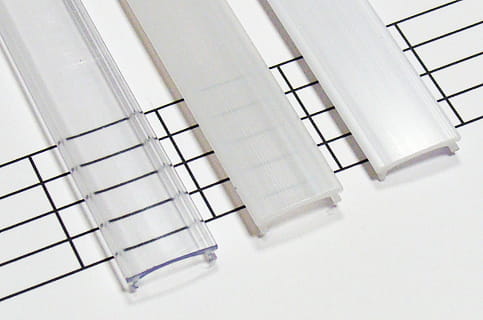 Dedykowane do profilu Lumines X. Montowane także poprzez wciśnięcie od góry, chociaż łatwiej jest wsunąć przesłonę z końca profilu. Możliwość łatwego i szybkiego montażu i demontażu. W połączeniu z odpowiednim profilem oraz zaślepkami maskującymi jego końce tworzy elegancką oprawę dla liniowego oświetlenia.