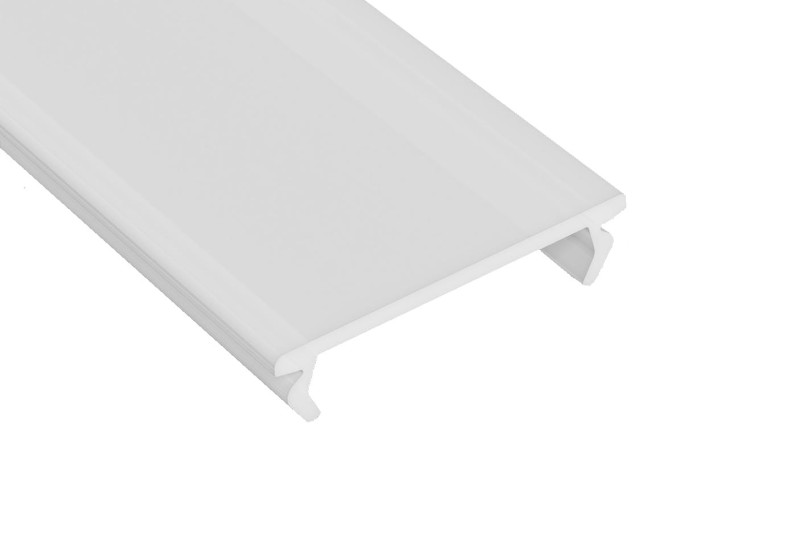 Montowane także poprzez wciśnięcie od góry, chociaż łatwiej jest wsunąć przesłonę z końca profilu. Możliwość łatwego i szybkiego montażu i demontażu. W połączeniu z odpowiednim profilem oraz zaślepkami maskującymi jego końce tworzy elegancką oprawę dla liniowego oświetlenia.