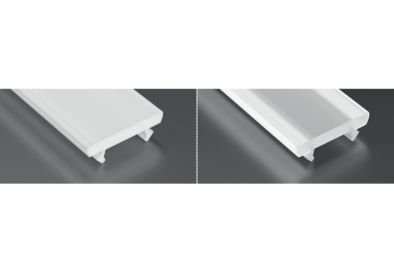 - mleczna Linia - biała przesłonka - wnętrze profilu jest niewidoczne, bardzo dobrze rozprasza punkty świetlne. Specjalna konstrukcja klosza została zaprojektowana specjalnie, na konieczność zwiększenia odporności na wilgoć i zachlapania.