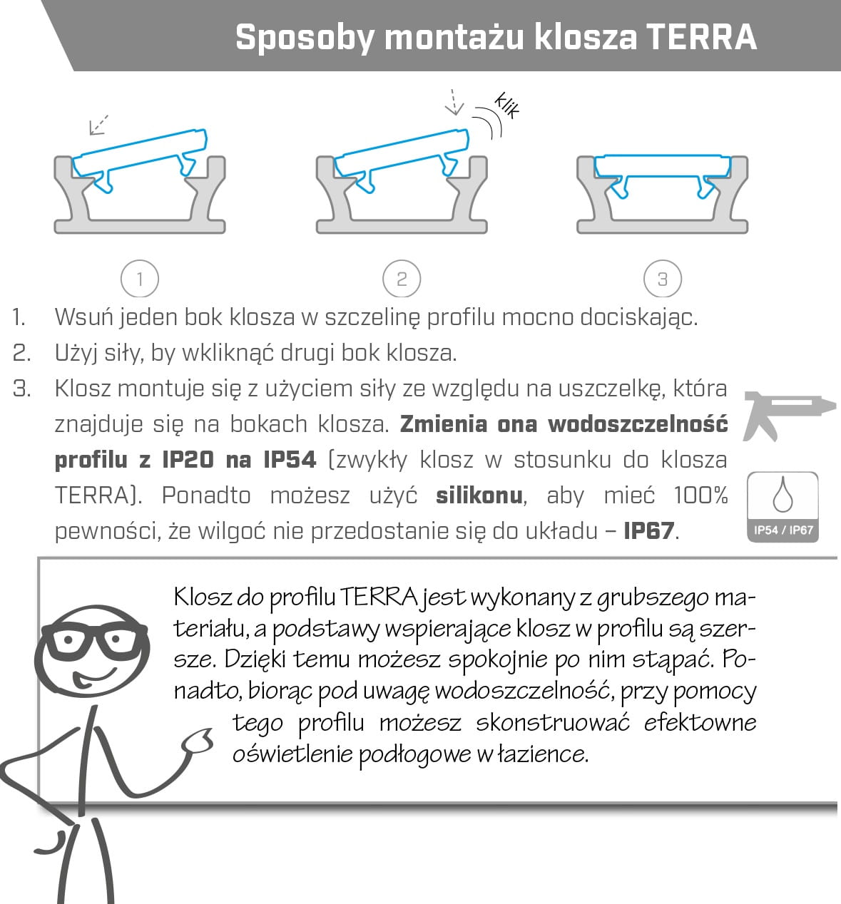 Klosz podłogowy mleczny LINIA do profili TERRA oraz SCALA .
