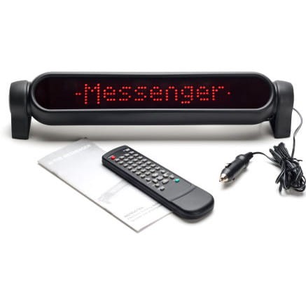 To niewielkie urządzenie pozwala przekazywać innym ludziom rozmaite komunikaty – od prostych słów aż po złożone zdania (w jednej pamięci można zapisać komunikat do 80 znaków; dostępnych jest 11 programowalnych pamięci z których wyświetlanie tekstu wywołuje się za pomocą wciśnięcia odpowiedniego przycisku na pilocie). Wyświetlacz LED do samochodu posiada także funkcję wyświetlania tekstu w formie lustrzanej – np. napis umieszczony na przedniej szybie jest możliwy do odczytania dla kierowców jadących z przodu i obserwujących tył w lusterku; możliwe jest regulowanie prędkości wyświetlania a także stopnia jasności diod; dowolnie można zaprogramować kolejność i ilość wyświetlania zapamiętanych komunikatów, w ten sposób stworzyć naprawdę długi tekst ; możliwość wyświetlania komunikatu w sposób ciągły - znika z lewej o od razu pojawia się z prawej; jedna z pamięci nosi nazwę – banner i jest wyświetlana automatycznie po włączeniu urządzenia.