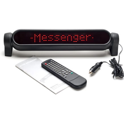 To niewielkie urządzenie pozwala przekazywać innym ludziom rozmaite komunikaty – od prostych słów aż po złożone zdania (w jednej pamięci można zapisać komunikat do 80 znaków; dostępnych jest 11 programowalnych pamięci z których wyświetlanie tekstu wywołuje się za pomocą wciśnięcia odpowiedniego przycisku na pilocie). Urządzenie posiada także funkcję wyświetlania tekstu w formie lustrzanej – np. napis umieszczony na przedniej szybie jest możliwy do odczytania dla kierowców jadących z przodu i obserwujących tył w lusterku; możliwe jest regulowanie prędkości wyświetlania a także stopnia jasności diod; dowolnie można zaprogramować kolejność i ilość wyświetlania zapamiętanych komunikatów, w ten sposób stworzyć naprawdę długi tekst ; możliwość wyświetlania komunikatu w sposób ciągły - znika z lewej o od razu pojawia się z prawej; jedna z pamięci nosi nazwę – banner i jest wyświetlana automatycznie po włączeniu urządzenia.