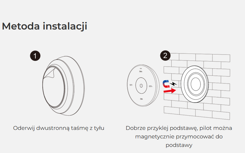 Panel MiLight 1strefa MONO+CCT biały okrągły magnetyczny model K2S