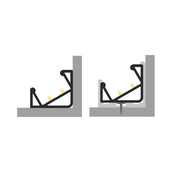 Profil P3-4 jest profilem narożnym o kącie kierowania światła równym odpowiednio 30 i 60 stopni. Najczęściej stosowany w narożnikach mebli lub ścian, jednak dzięki swojej pełnej budowie, może być stosowany również przy frontach szafek, kierując światło do ich środka.
