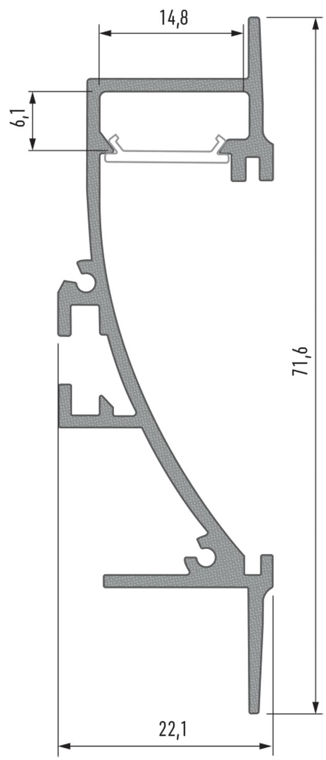 Profil ten może być zastosowany jako przypodłogowy , przyścienny , listwa przypodłogowa lub jako ścienny wpuszczany zarówno w pionie jak i poziomie.
