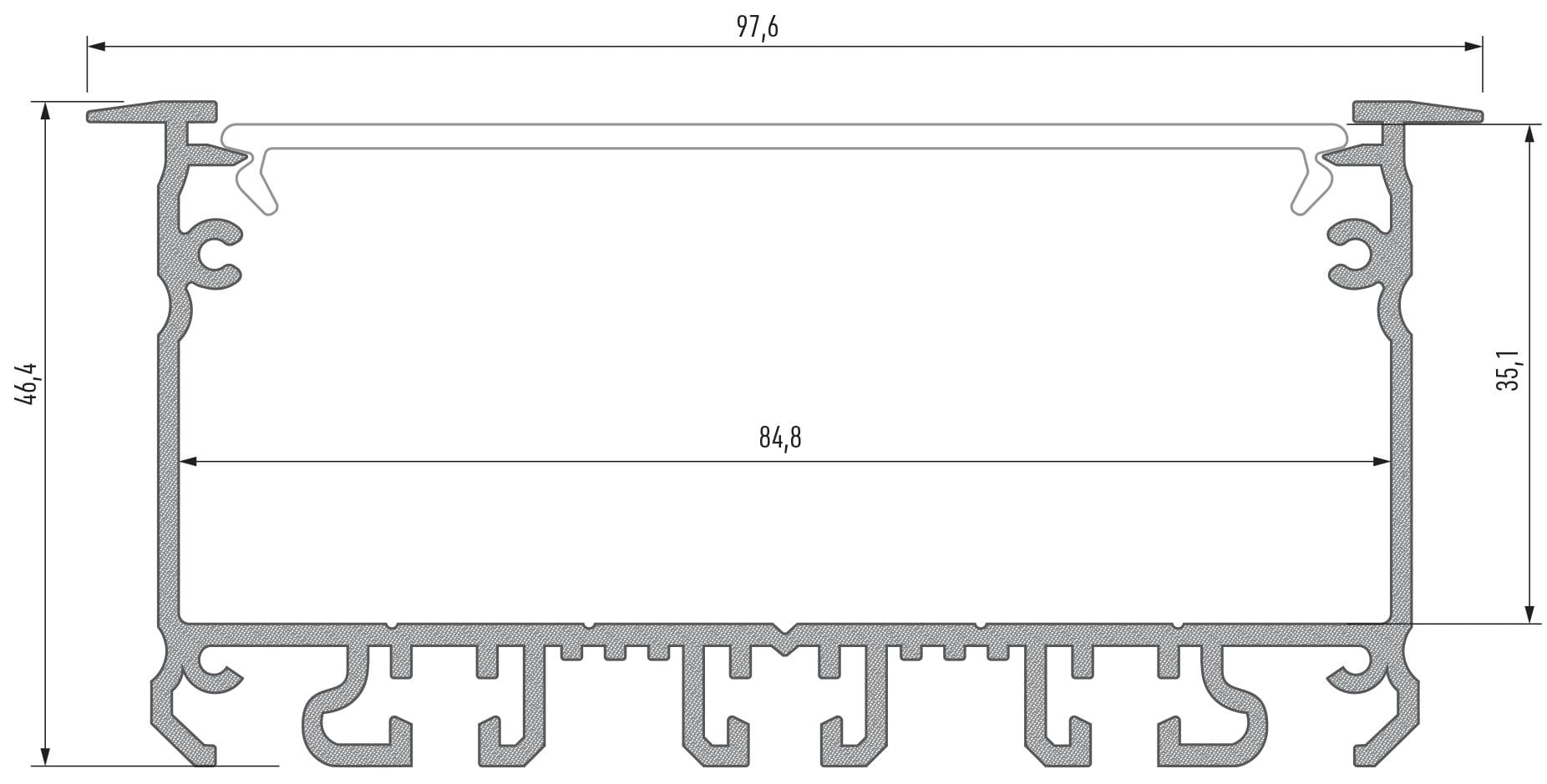 Profil aluminiowy inLARGO LUMINES to profil wpuszczany do budowy złożonych systemów oświetleniowych z wykorzystaniem do 6 taśm LED. Przeznaczony do stosowania w przestrzeniach użyteczności publicznej i budynkach komercyjnych.