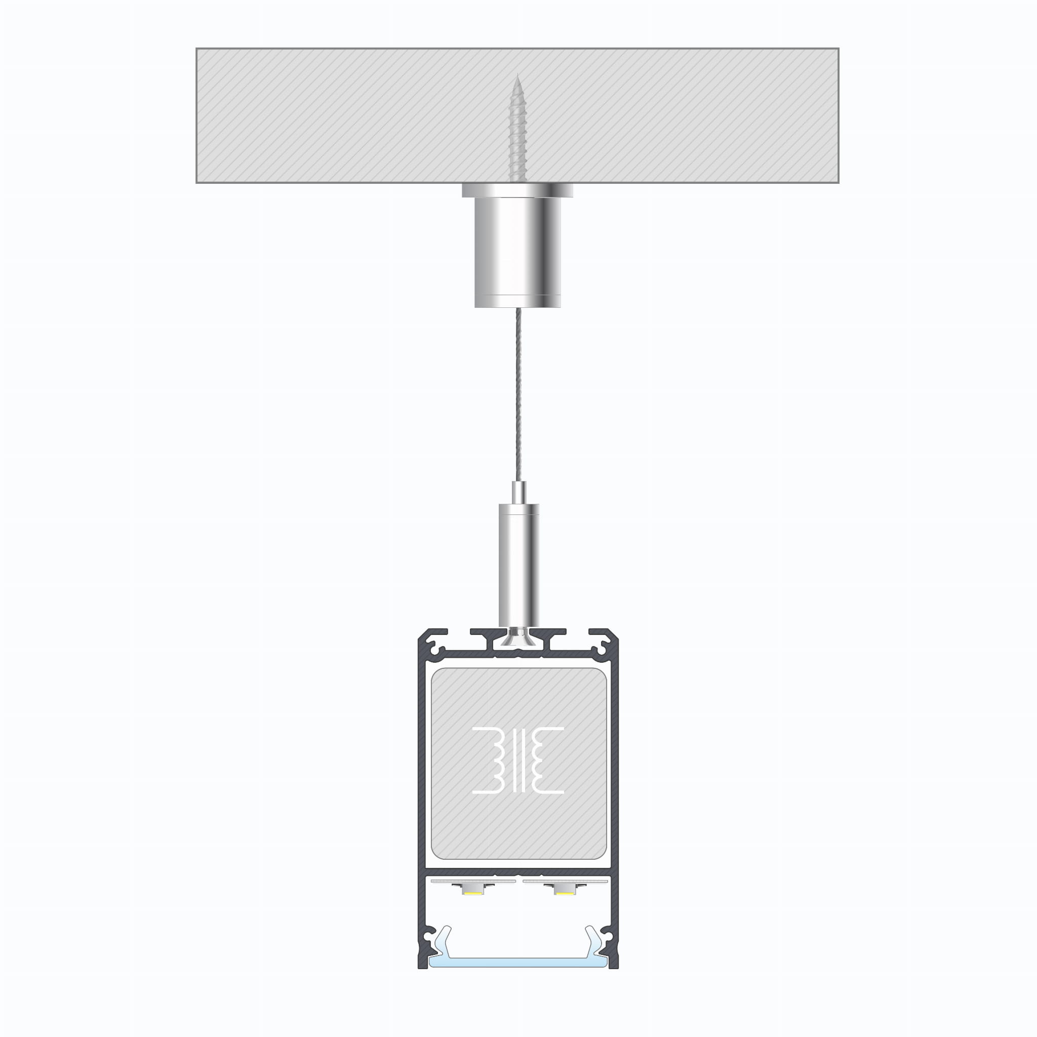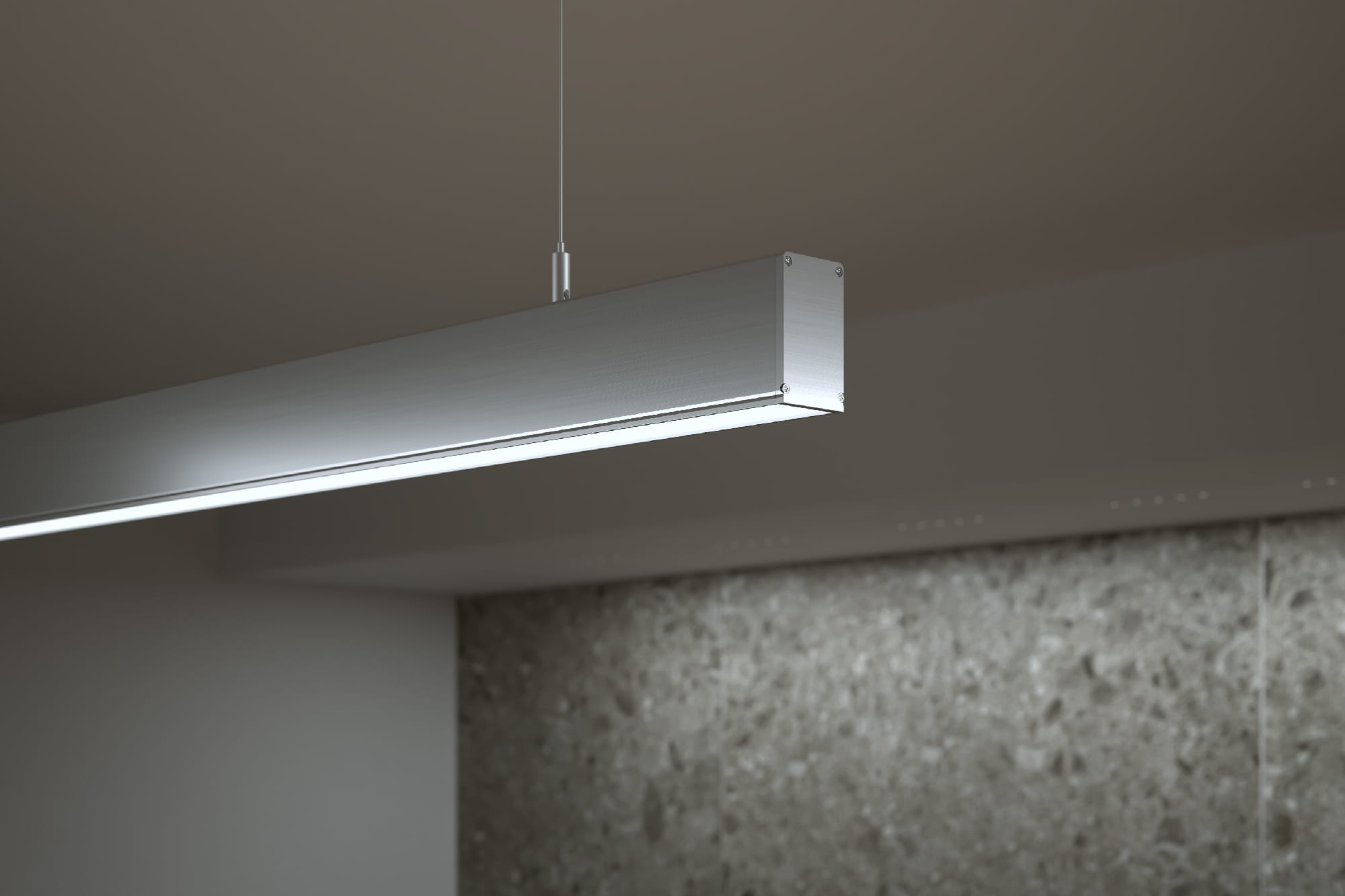 Profil architektoniczny LUMINES typ CLARO. Został zaprojektowany tak by można było w nim schować zasilacz oraz przykleić równolegle do trzech taśm obok siebie. Dzięki temu, tworzy szerokie źródło światła, świetnie nadaje się do zastosowania w pomieszczeniach biurowych i sklepowych jako lampa wisząca ( przy użyciu specjalnych zawiesi oraz łączników kątowych i prostych).