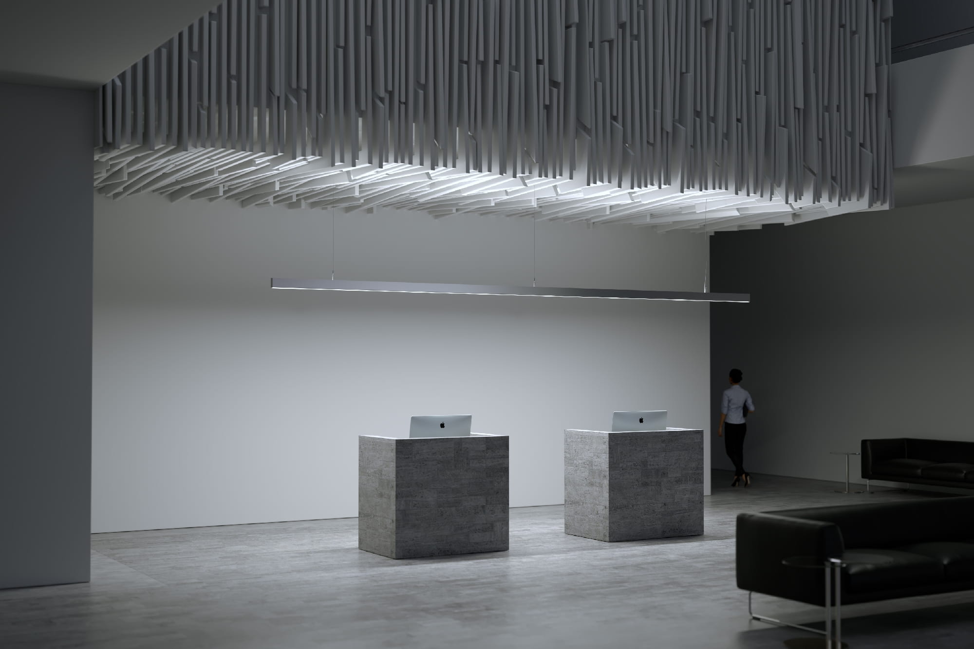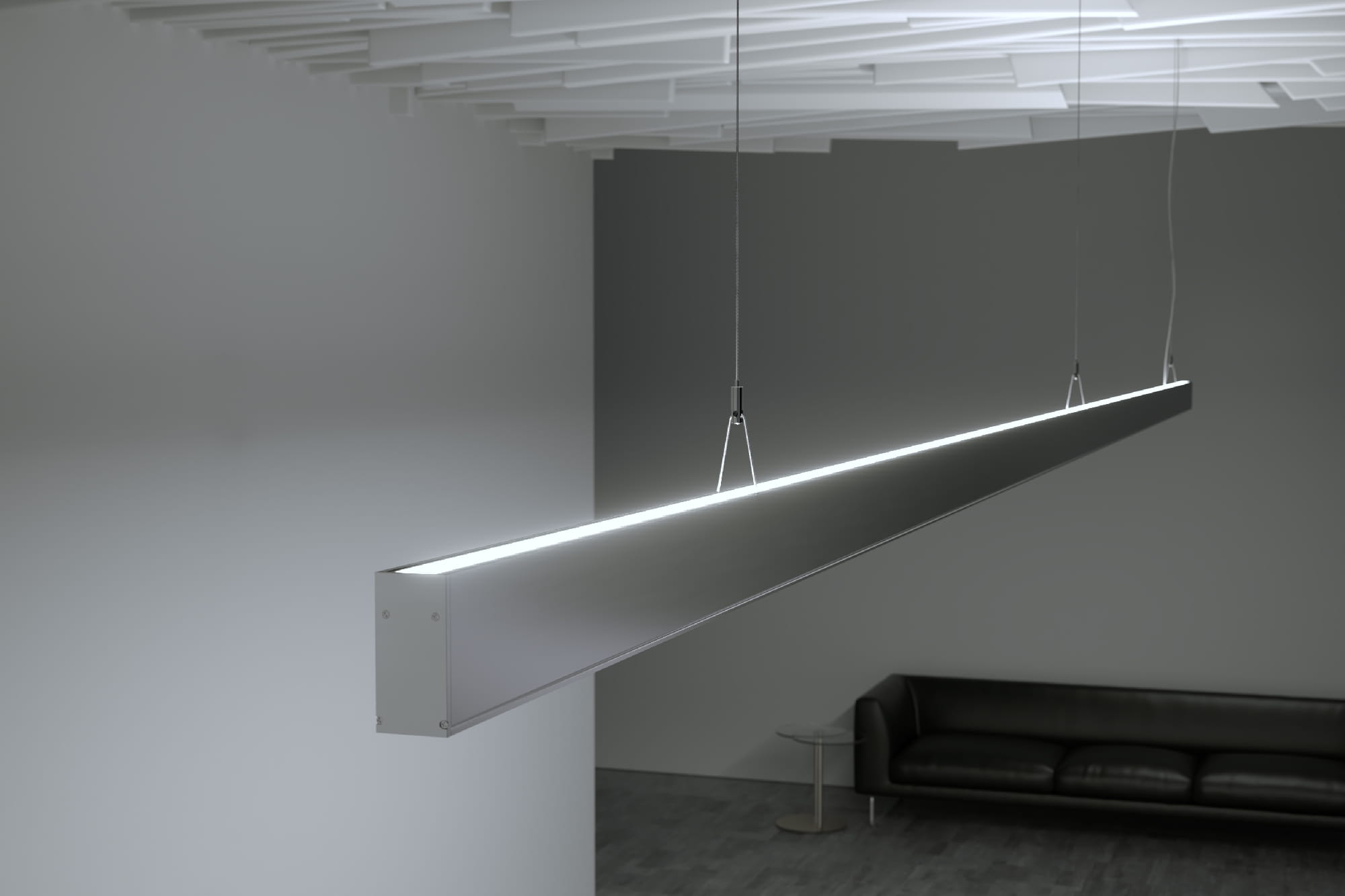 Profil architektoniczny LUMINES typ DULIO. Został zaprojektowany tak by można było w nim schować zasilacz oraz przykleić równolegle dwie taśmy obok siebie zarówno na dole jaki i u góry profilu. Dzięki temu, tworzy szerokie źródło światła, świetnie nadaje się do zastosowania w pomieszczeniach biurowych i sklepowych jako lampa wisząca ( przy użyciu specjalnych zawiesi typu Y oraz łączników kątowych i prostych).