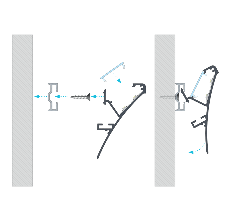 LOGI jest to profil naścienny przeznaczony do montażu na ścianie częściowo pod tynk (gładź).