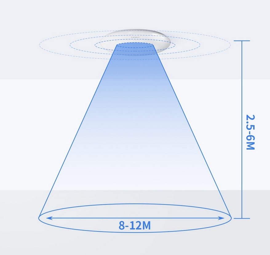 Źródło światła w formie okrągłego nawierzchniowego panelu sufitowego - plafonu wraz z wbudowanym zasilaczem. Zakres kątowy czujnika 360°, zalecana wysokość montażu 2,5m - 6m.