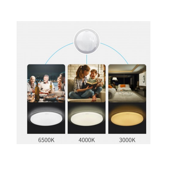 Plafon posiada funkcję zmiany pełnego spektrum światła (CCT) od barwy zimnej do ciepłej (3000K-6500K). Za pomocą pilota można oczywiście regulować natężenie światła a także ustawić czas automatycznego wyłączenia lampy.