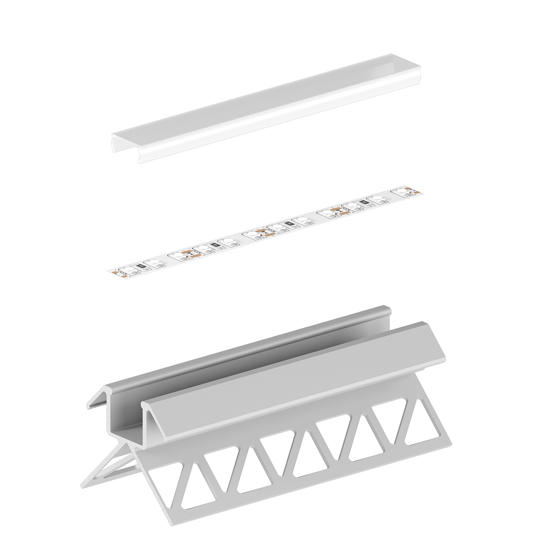 Profil LED P17-3 to innowacyjny profil LED, który idealnie pasuje do montażu pod płytkami lub płytami GK. Jest szczególnie przydatny w narożnikach wewnętrznych, gdzie jego wykończone łapki doskonale maskują krawędzie płytek lub płyt GK, tworząc elegancki wygląd.