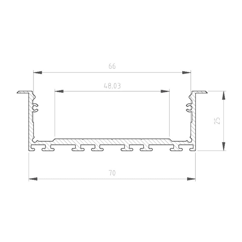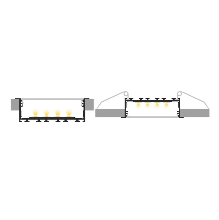 Profil architektoniczny P27-1 jest przeznaczony do wpuszczania w wyfrezowane lub wycięte otwory. Może zostać użyty w dowolnej powierzchni (GK, płyty meblowe, ściany, sufity, itp.), a estetyczne skrzydełka kompletnie zasłonią krawędzie otworu. Mieści 5-6 taśm LED i doskonale sprawdza się do tworzenia złożonych opraw świetlnych w budynkach komercyjnych lub w domach. Budowa profilu oraz osłonka z poliwęglanu (PC) pozwala uzyskać jednolitą linię światła na całej powierzchni