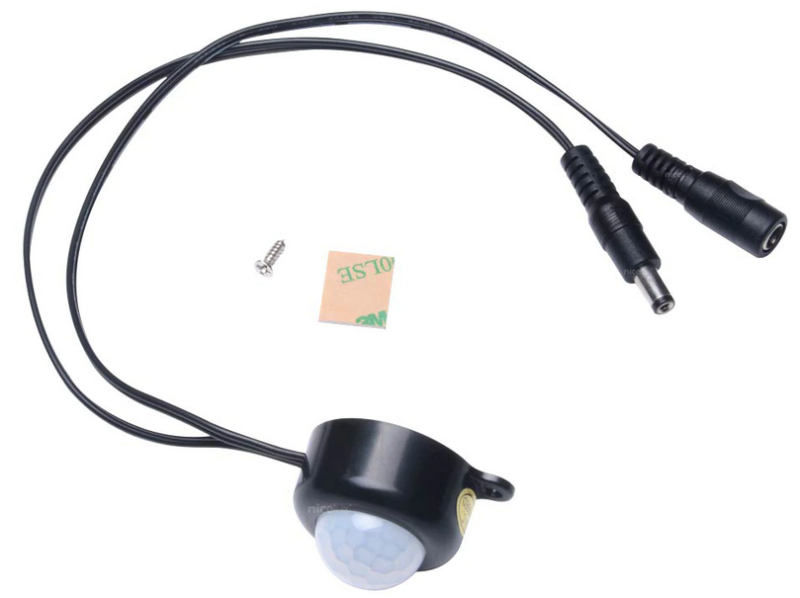 Urządzenie służy do włączania i wyłączania światła pod wpływem ruchu w odległości do 3 metrów w pobliżu czujnika PIR. Czujnik zamknięty w eleganckiej plastikowej obudowie z gniazdem i wtykiem DC 2,1/5,5. Bardzo łatwy montaż. Wyposażony jest w funkcję, która włącza taśmę na 18 sekund, po czym, gdy nie wykryje ruchu - wyłącza obwód. Aby ponownie włączyć taśmę, należy wykonać ruch w pobliżu czujnika. Może służyć z powodzeniem nie tylko do taśm LED, ale do wszystkich urządzeń, które chcemy włączać na ruch.