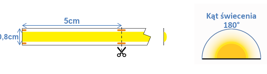 W przypadku zakupu mniejszej ilości (np. 1 sztuka = 1m) taśma może być zakończona przewodem, jednak nie jest to gwarantowane.