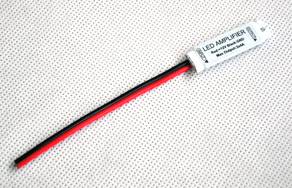 Najmniejszy z dostępnych na rynku, kompaktowy, łatwy w montażu. Dzięki wzmacniaczowi, możemy wydłużyć odcinek taśmy bez konieczności używania nowego sterownika. Wzmacnia sygnał wysyłany przez sterownik RGB, zapobiega spadkom napięcia związanym z dłuższymi odcinkami listew 12V. Ze wzmacniaczami można podłączyć dowolną długość taśm do jednego kontrolera.