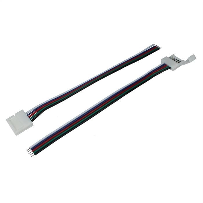 Złącze umożliwia szybkie połączenie taśmy LED RGBW o szerokości 10 mm (SMD5050 - 5pin) bez konieczności lutowania bądź używania jakichkolwiek narzędzi. Wystarczy odpowiednio umieścić taśmę oraz zamknąć zatrzask aby otrzymać solidne połączenie. Znajdujący się pomiędzy zatrzaskami fragment przewodu umożliwia ułożenie czy też załamanie taśmy pod dowolnym kątem.