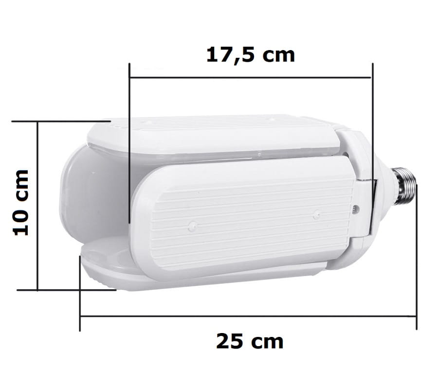 Źródło oświetlenia LED w formie żarówki z trzonkiem E27. Idealnie sprawdzi się w instalacjach, gdzie potrzeba dużej ilości światła a nie ma możliwości rozbudowy istniejącej lampy. Ramiona są rozkładane i mogą być ustawione w dwóch pozycjach, tworząc elegancką, nowoczesną lampę.
